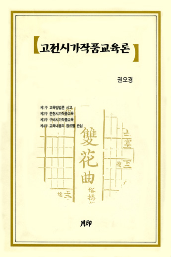 이 책은 시가작품에 내재한 의미를 새로이 찾고 그 결과를 교육의 현장에 반영하는 목적과 방법을 논의한 글들이다. 교육 대상으로서의 시가문학 텍스트를 확충하고 교육방법과 목적을 전환해 볼 요량으로 문헌시가작품교육과 구비시가작품교육으로 나누어 이 책의 제2부와 제3부로 삼았다. 제1부는 고전시가작품교육의 패러다임을 새로이 모색하는 시안적 글들이, 제4부에서는 시가작품에 관한 논문을 실었다.